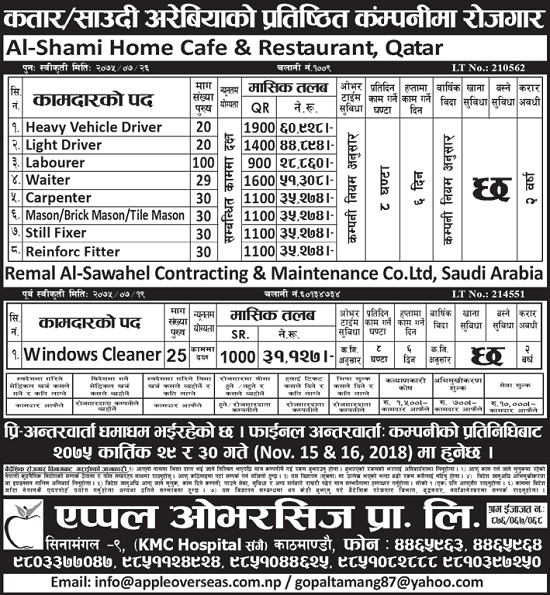 Qatar मा रोजगारीको अवसर !! Qatar मा Various Posts मा सुनौलो अवसर!!!
